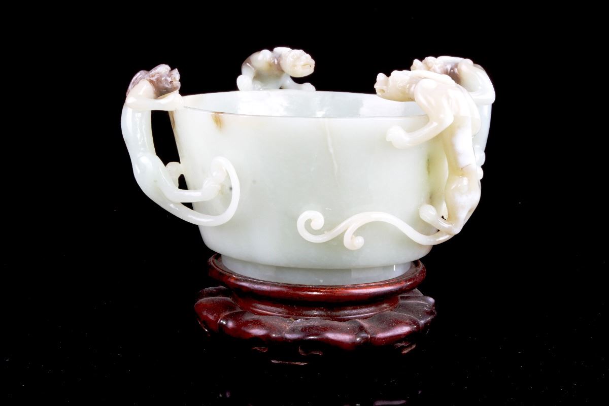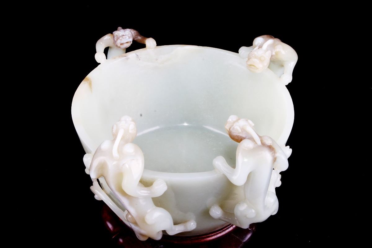 [CHINESE] LATE 19TH CENTURY JADE CARVING BOWL CARVED WITH STATUES OF "PIXIU"(1142g)十九世纪后期玉雕貔貅纹玉碗带底座(玉净重1142g)