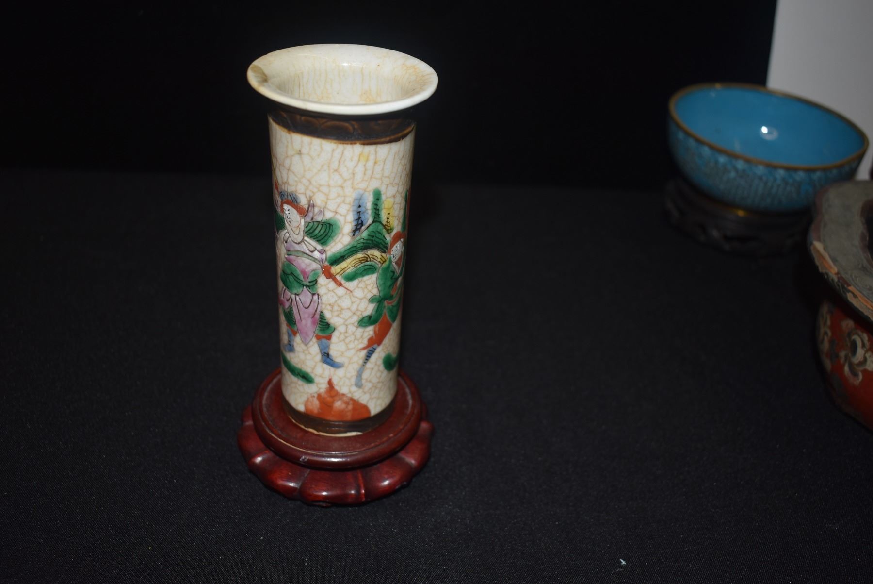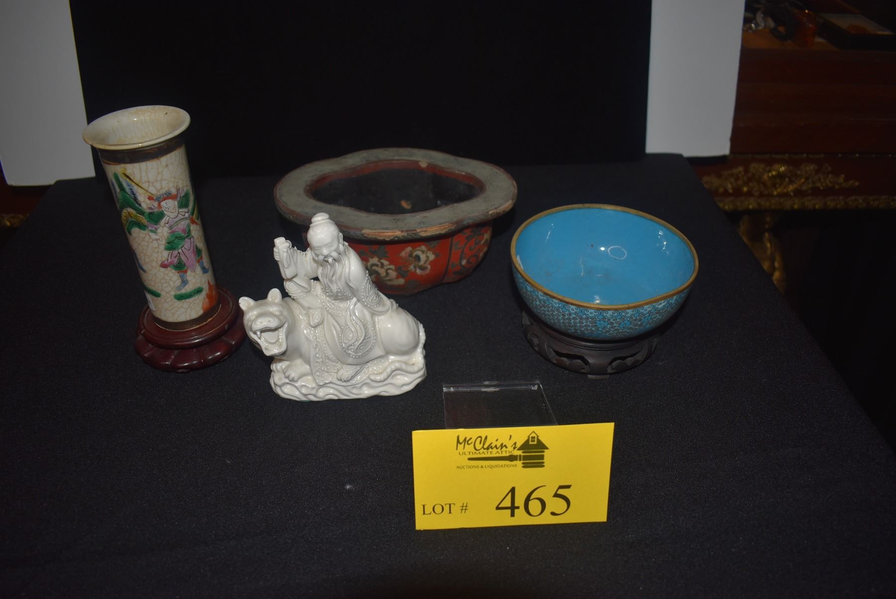 CHINESE MIXED LOT: ANTIQUE AND VINTAGE BOWLS, FIGURE, PORCELAIN W/STANDS (4 PCS)