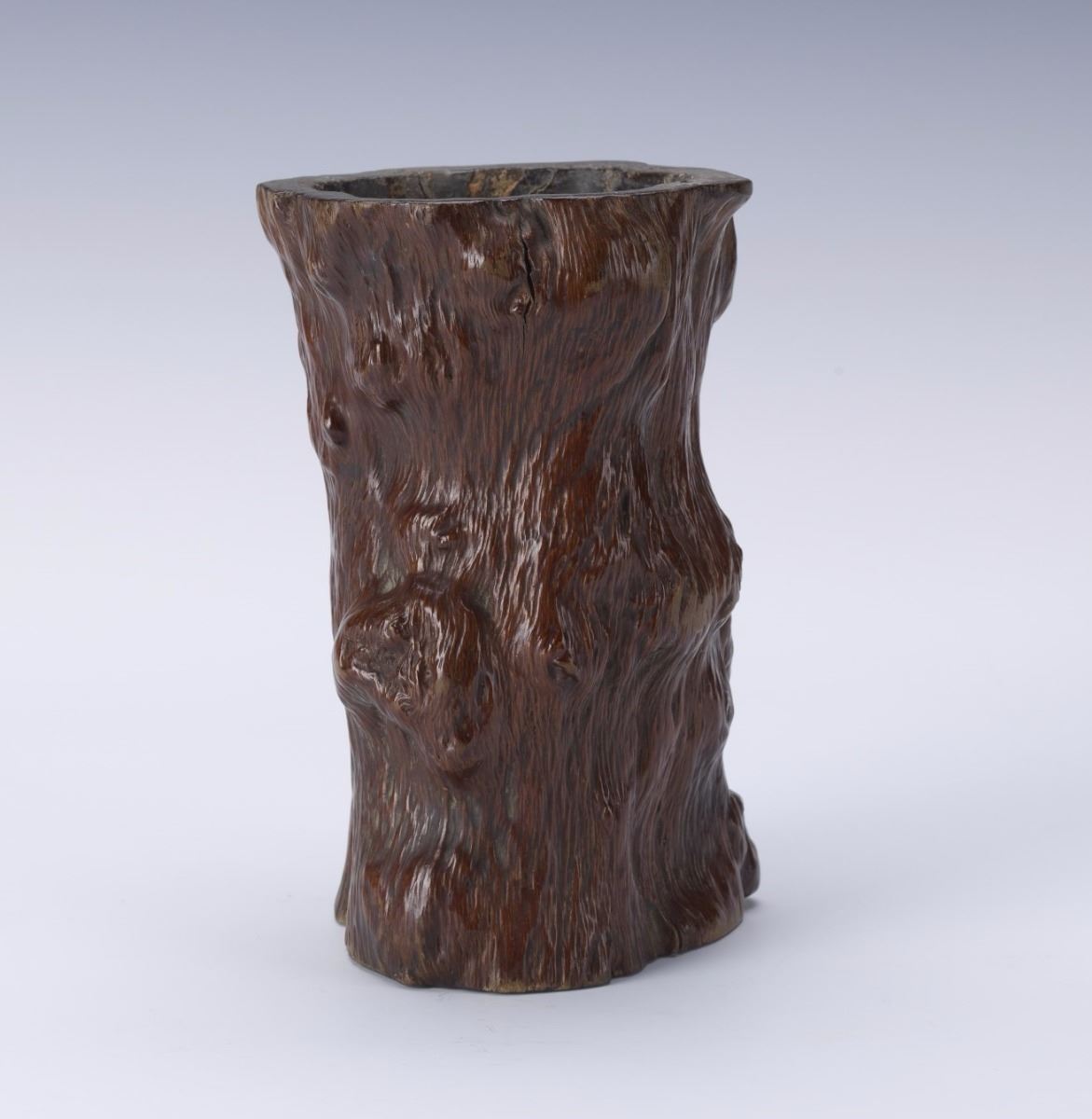 Chinese Naturalistic Wood Brush Pot, in the form of an organic tree trunk. Length 4" Width 3.25" Height 6.25"