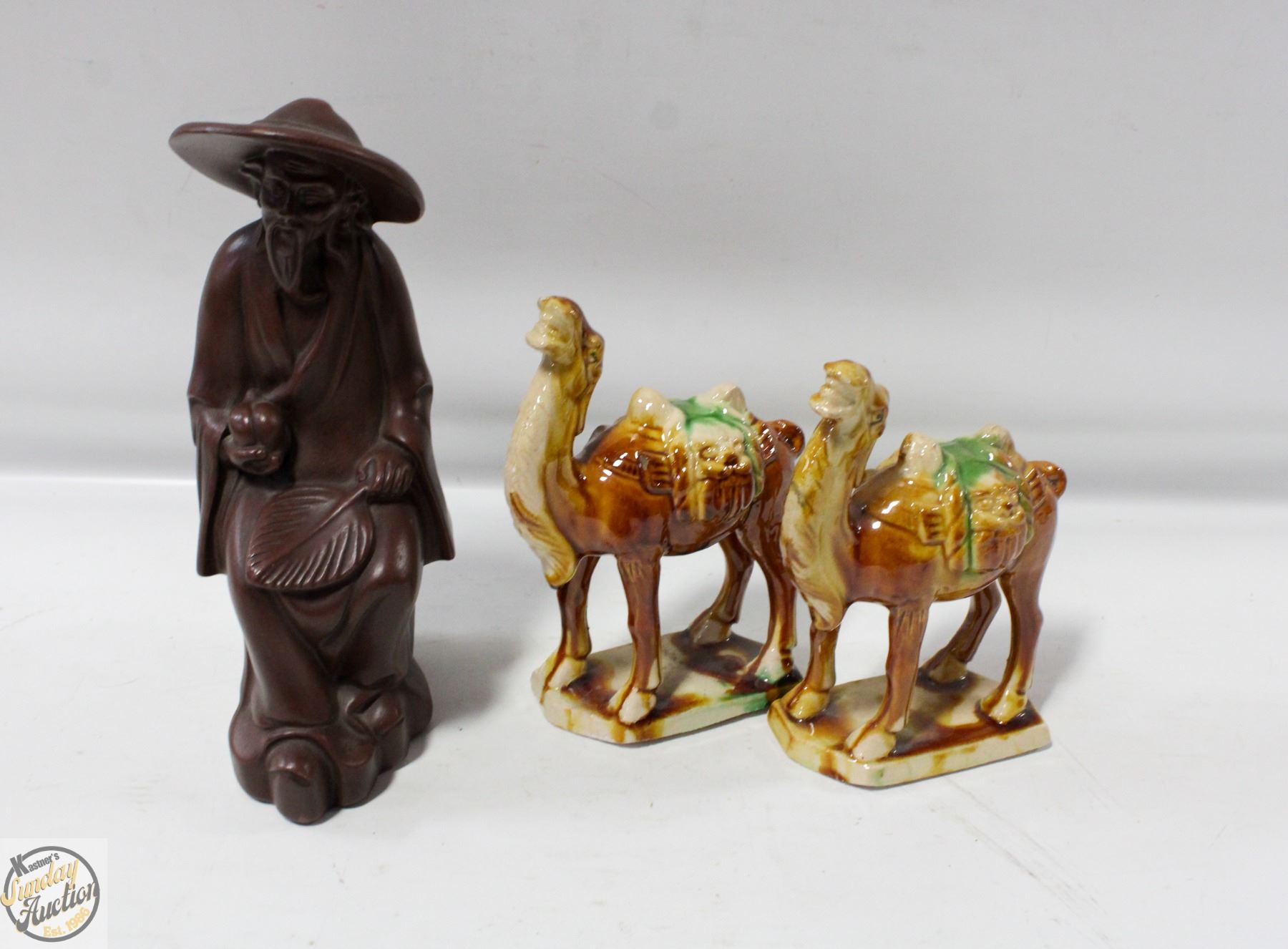 CHINESE OLD MAN STATUE. 2 CAMELS