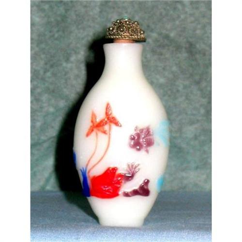 WONDERFUL SNUFF BOTTLE, CAME FROM AN IMPORTANT COLLECTION IN THE CHICAGO AREA. THIS PIECE IS A 6 COLOR OVERLAY GLASS BOTTLE.IN THE YANGZHOU SCHOOL STYLE. RED FROG ON A LILY PAD,PURPLE AND LIGHT BLUE FISH,ON THE BACK ARE TWO RED AND GREEN FISH.THE STOPPER HAS BEEN REPLACED LATER. REFER TO THE SOTHERBY'S AUCTION APRIL 2005 FINE CHINESE WORKS OF ART CATALOG. PAGE 285. THIS ONE IS REALLY SPECTACULAR.