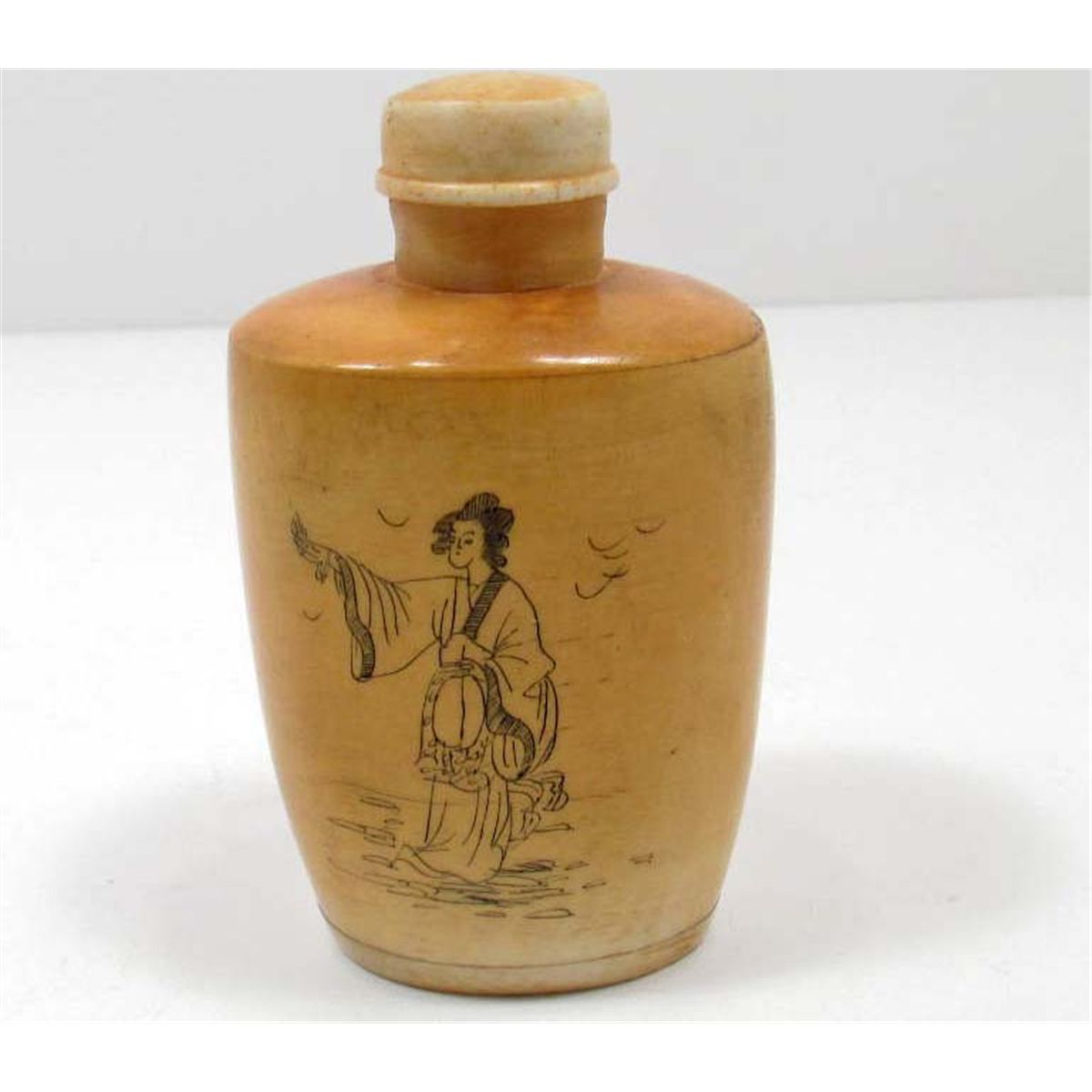 Chinese Old Handwork Ox Bone Snuff Bottle Woman