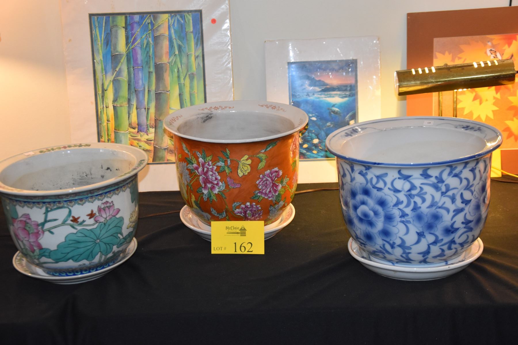 CHINESE PORCELAIN PLANTERS W/TRAYS (3 PCS)