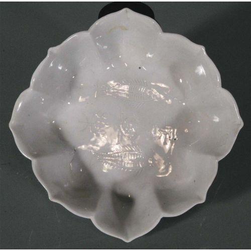 1 CHINESE PORCELAIN WEDDING DISH lotus form with incised designs to interior CONDITION REPORT: excellent. PACKING AND SHIPPING (excluding insurance) by Fairfield Auction to points within the Continental U.S.A. and Canada (all other international must be handled by 3rd party shipper) $20.