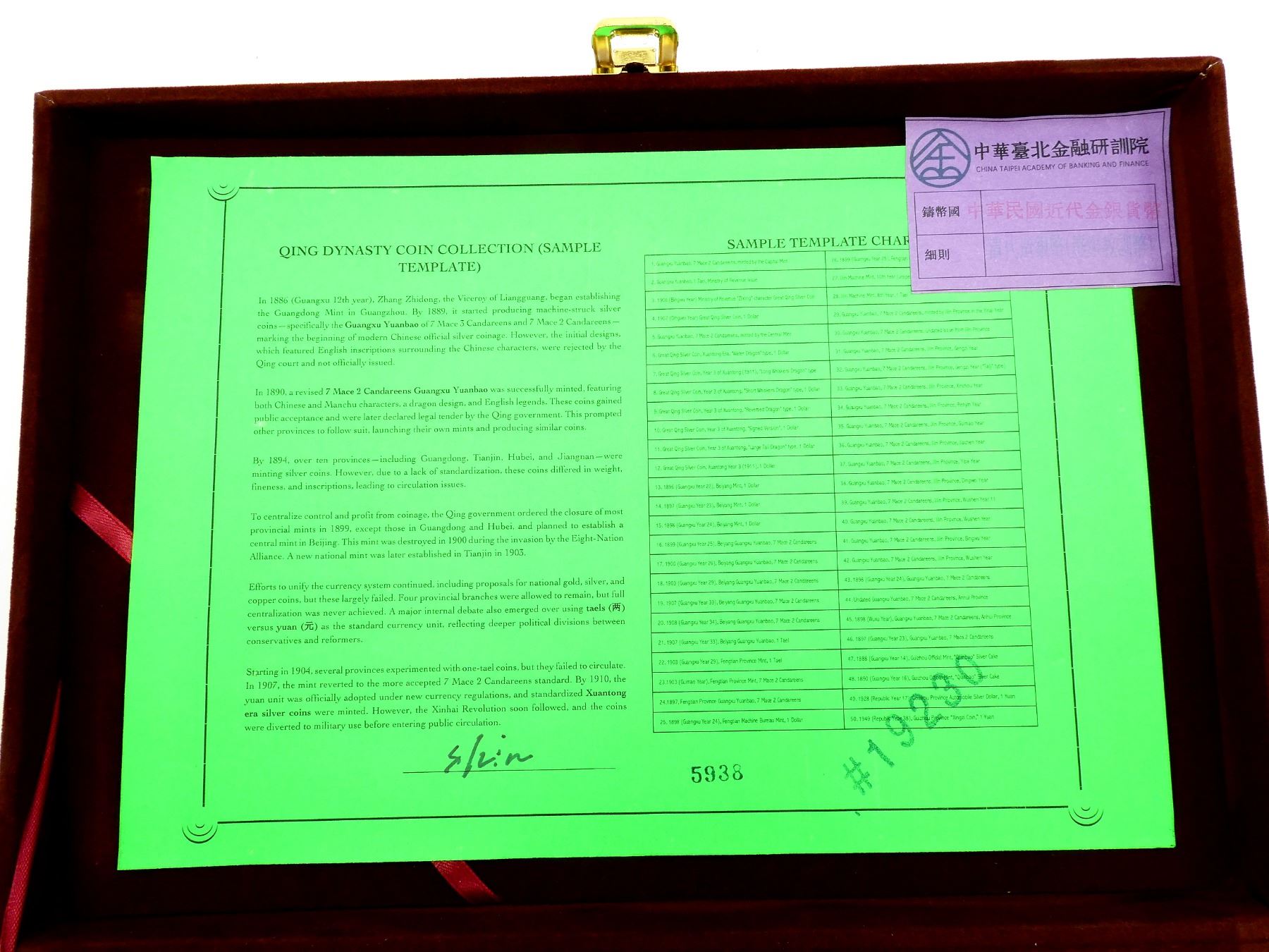 CHINESE QING DYNASTY COIN COLLECTION (SAMPLE TEMPLATE) IN CASE
