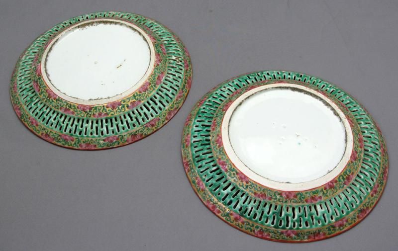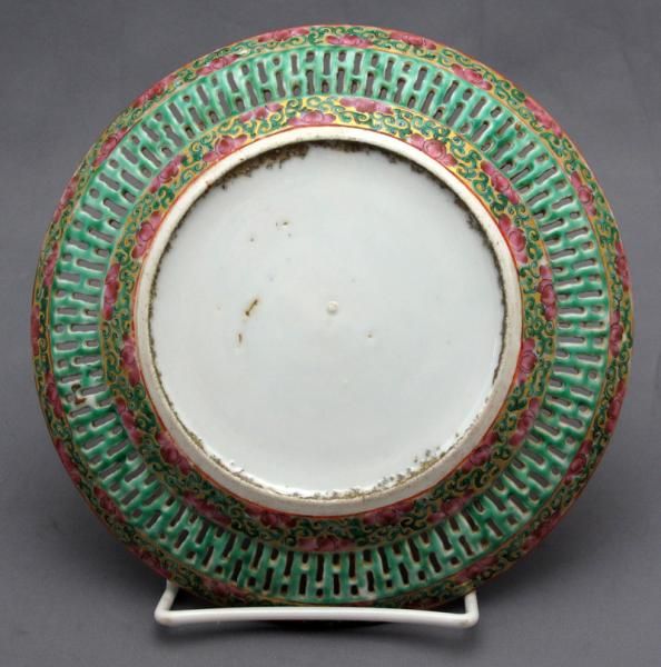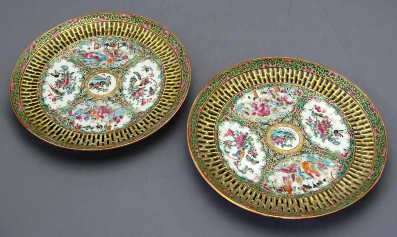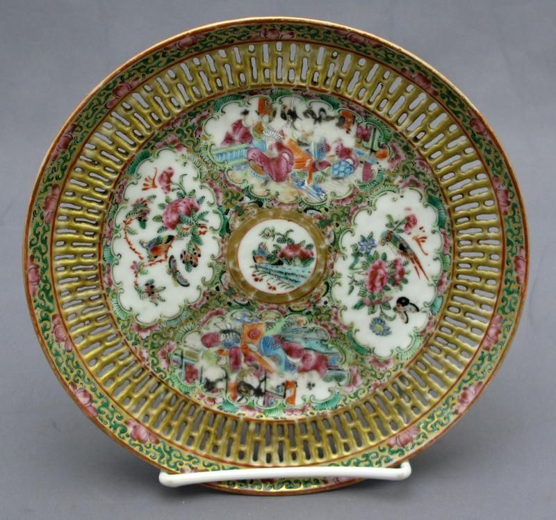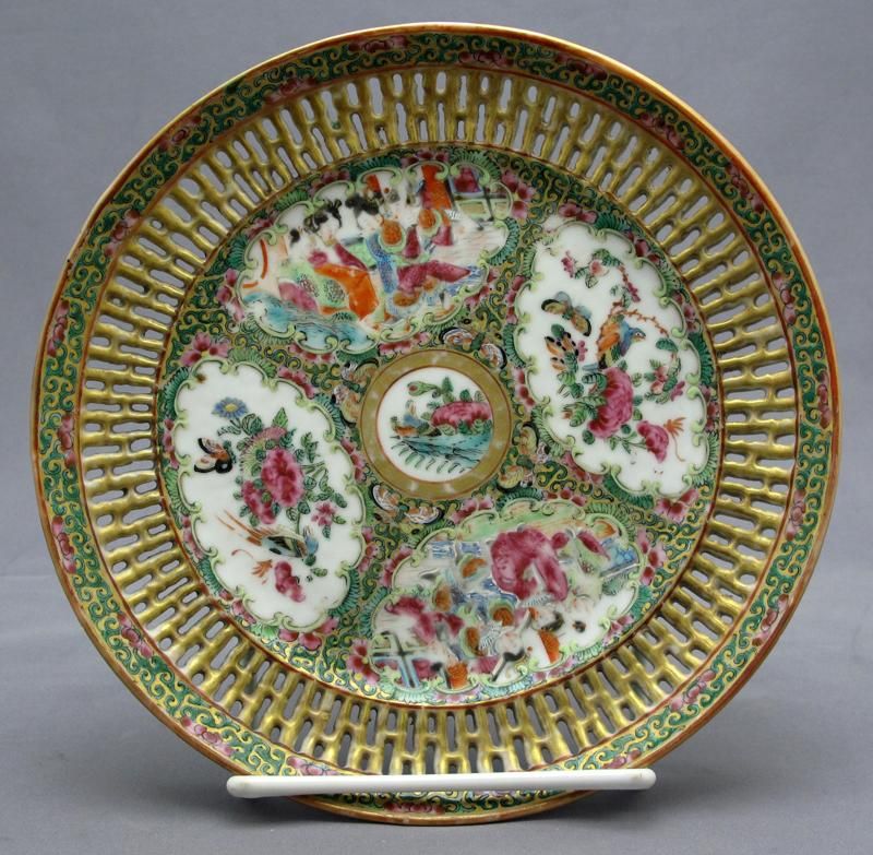 -19th century, with pierced borders and hand-painted floral cartouches.