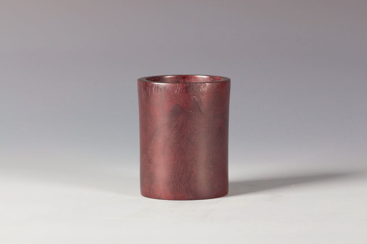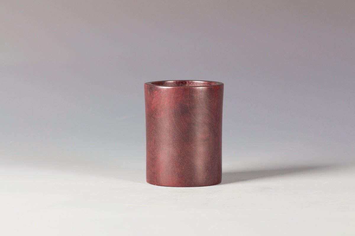 Hardwood or Zitan Brush Pot of cylindrical form. Height 4.5" Diameter 3.75