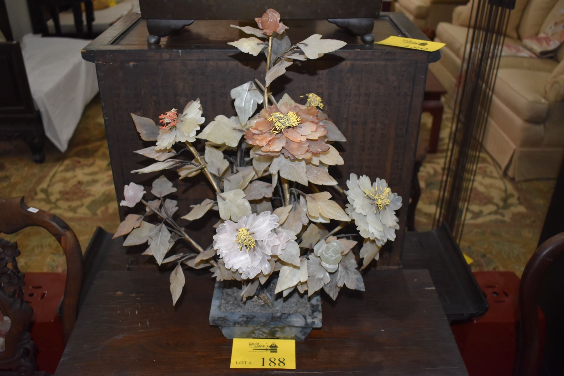 CHINESE SEMI-PRECIOUS STONE FLORAL ARRANGEMENT