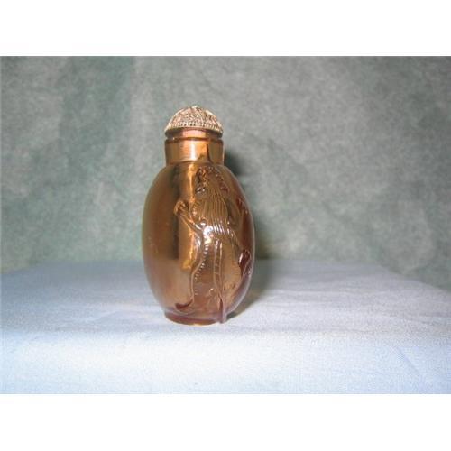 THIS SNUFF BOTTLE IS REALLY VERY NICE, SMOKEY CYRSTAL, DARK COLOR IN IMAGE BUT IS LIGHTER. CARVED INTO THE SIDES APPEAR KYLIN WITH THIER TAILS ENCIRCLING THE BASE. STOPPER HAS BEEN REPLACED LATER. FROM AN IMPORTANT CHICAGO COLLECTION.
