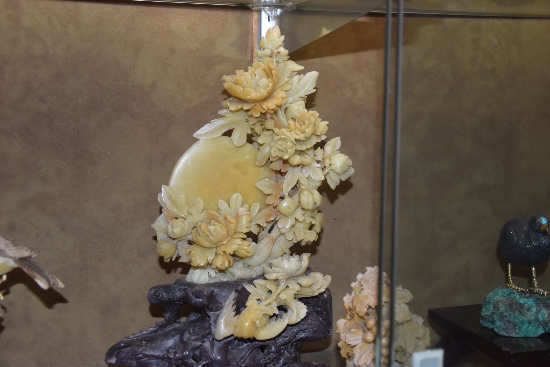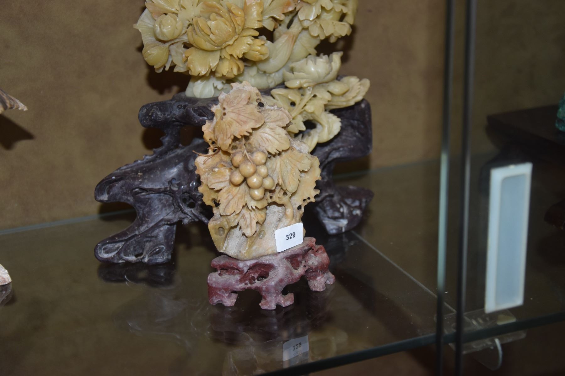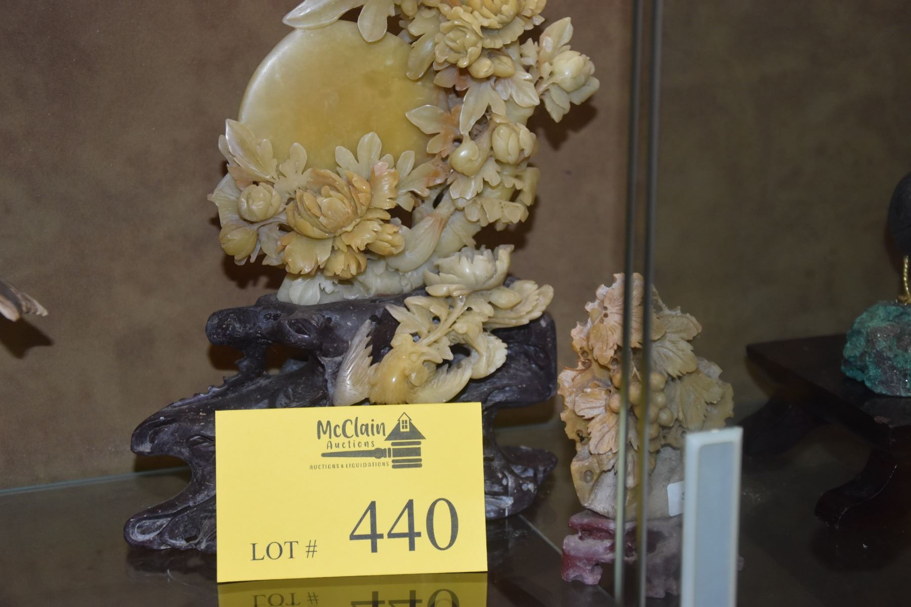 CHINESE STONE CARVINGS OF PEONIES & GRAPES (12"-15") (2 PCS)