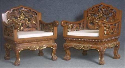 CHINESE TEAK CARVED ARM CHAIRS (matches previous lot)