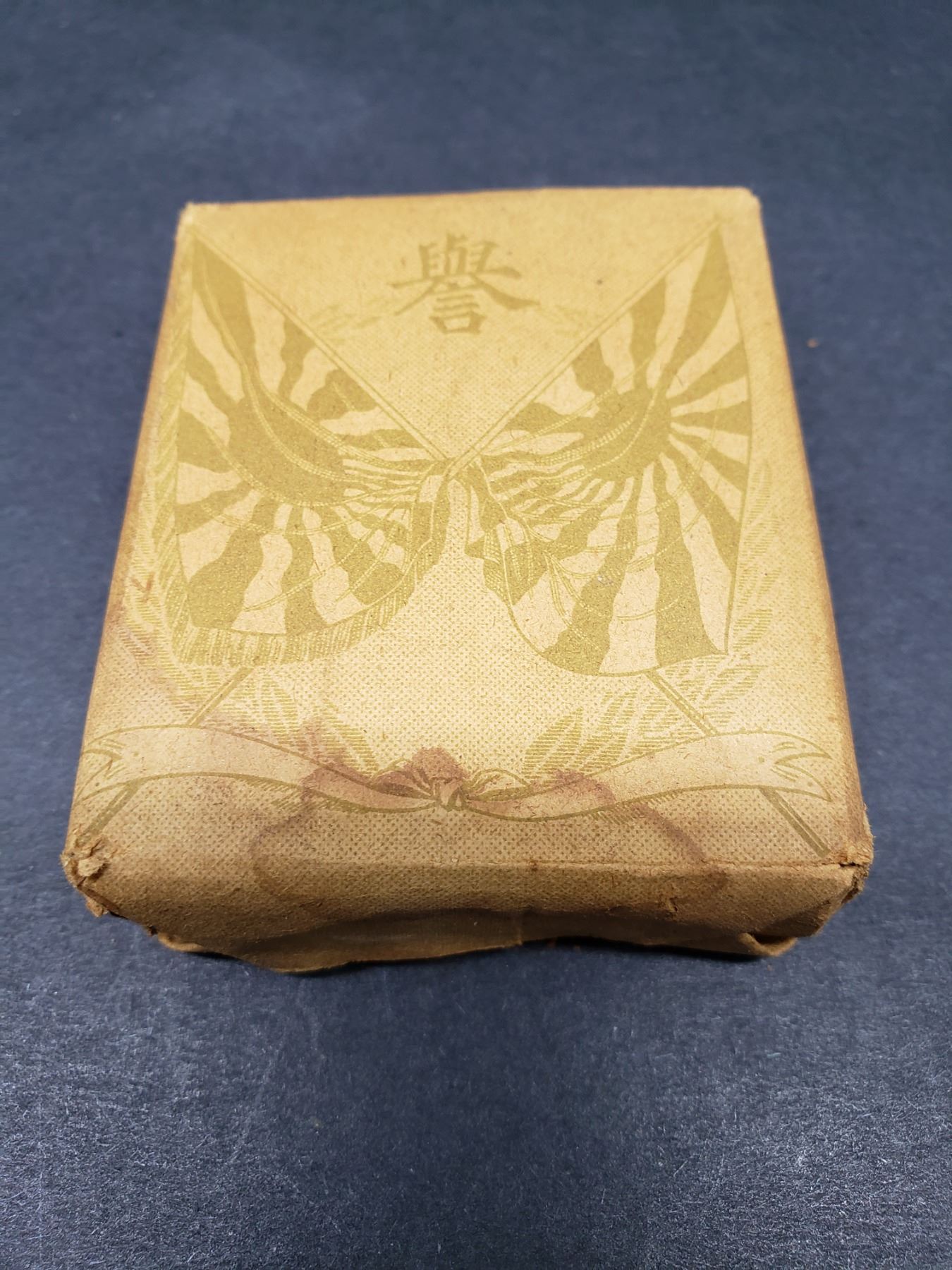 Chinese Unopened Cigarettes from WWII Piece is 3" x 2 1/4" All items Located in in Hollywood Florida Warehouse For Shipping Call today for quote they have item numbers and Pak Mail is available for all your custom packaging and shipping needs. We can package, palletize, crate, insure and ship to any Domestic or International location. All packaging and shipping fees must be paid in full before shipment is released. On international shipments, consignee is responsible for all Duties, Taxes, Customs Clearance or any destination fees that apply. Please visit our website @ www.pakmail.com/us770 for contact information or to get a quote. (Let us know you are a winning bidder from the Puckett auction so we can correctly arrange pick up for your item
