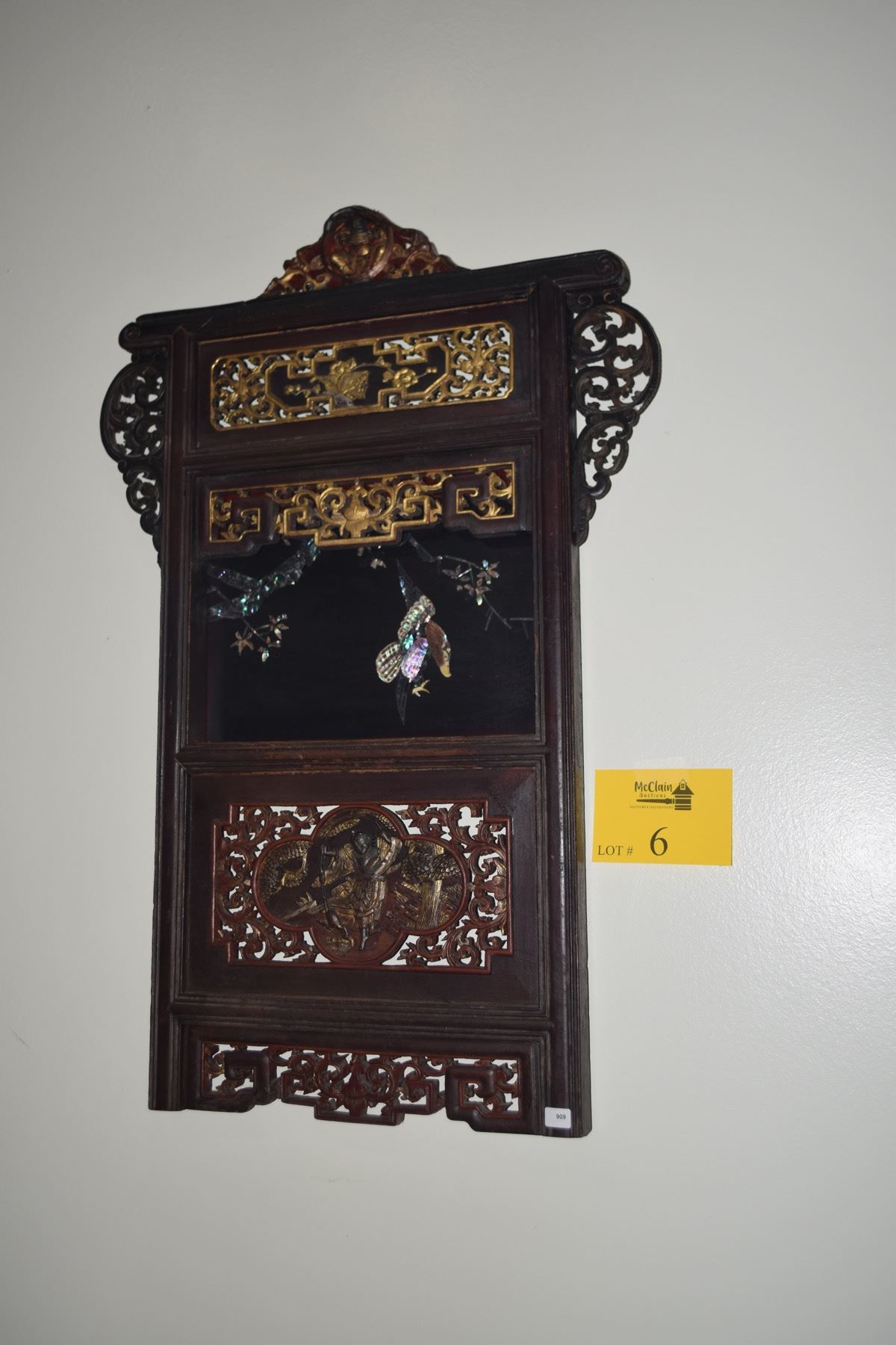 CHINESE WALL HANGING W/MOTHER OF PEARL FALCON (27 1/2" X 13 1/2")