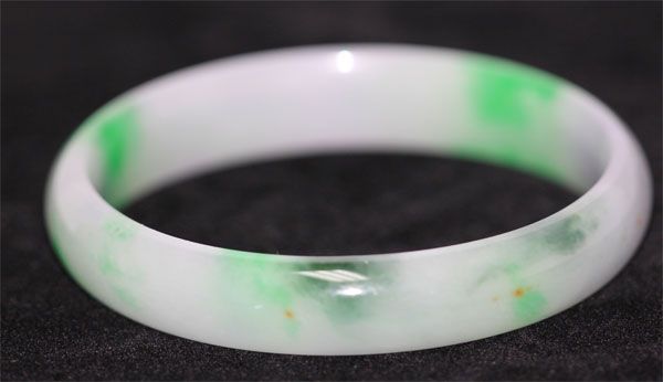 CHINESE WHITE AND GREEN JADE BANGLE; DIAMETER 2.7 IN **|**|** CHINESE WHITE AND GREEN JADE BANGLE; DIAMETER 2.7 IN ; MSRP: $0