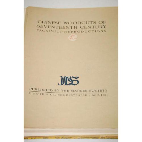 CHINESE WOODCUTS OF THE 17TH CENT.-FACSIMILE REPRODUCTIONS - FOLIO OF 15 PRINTS, MAREES SOCIETY- R. RIPER & CO. ROMERSTRASSE MUNICH (VARIOUS SIZES) - EX-LIBRARY W/ MARKS, TONING, IMPERFECTIONS