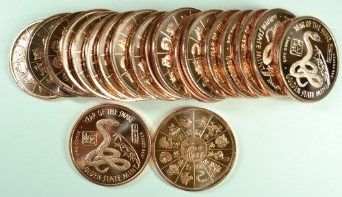 CHINESE ZODIAC "YEAR OF THE SNAKE", ON COPPER ROUNDS, ( ONE ROLL ) 20 PIECES