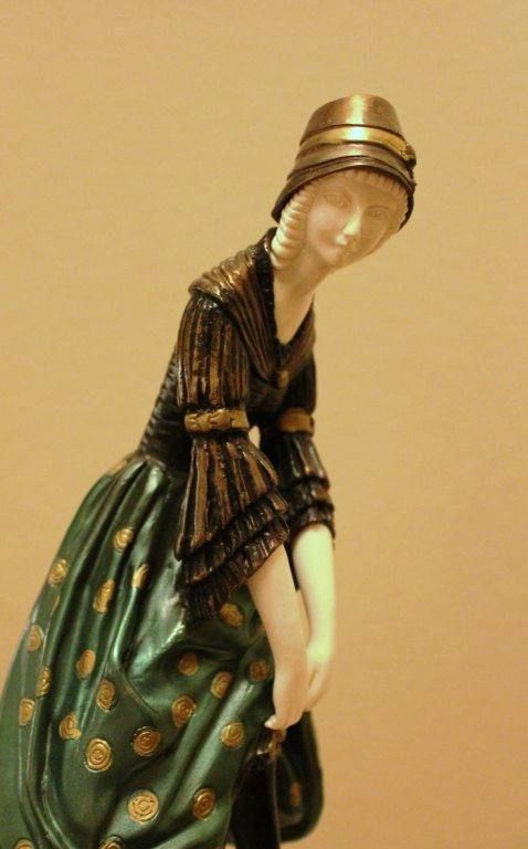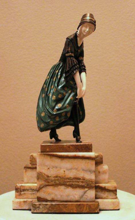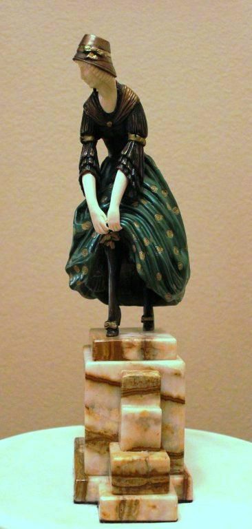 BRONZE AND IVORY SCULPTURE - SIGNED - MULTI COLOR FINISH - HAND CARVED IVORY - MARBLE AND ONYX BASE - APPROX 16.5"X9"X4.5" - MUSEUM QUALITY