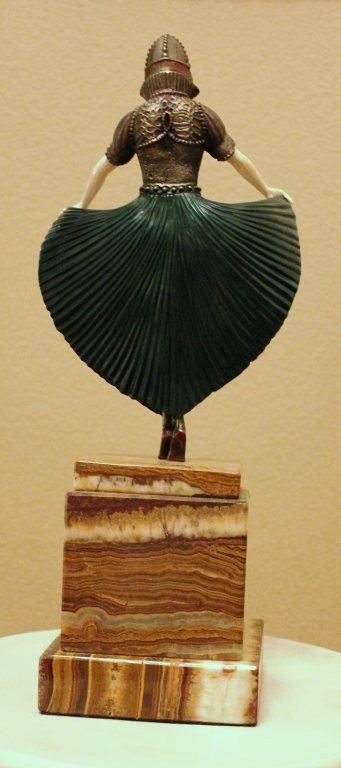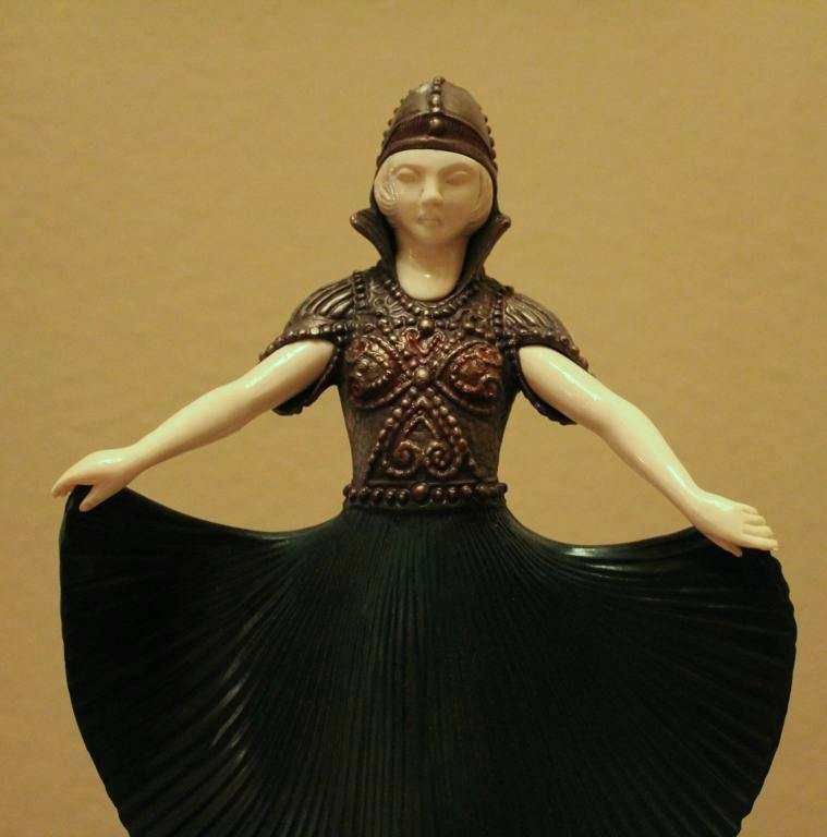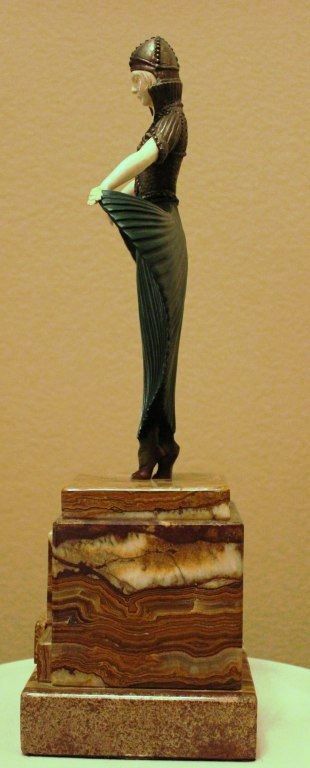 "ACTRESS" - BRONZE AND IVORY SCULPTURE - AFTER CHIPARUS - MUTLI COLOR FINISH - HAND CARVED IVORY AND BRONZE - MOUNTED ON MARBLE AND ONYX BASE - APPX 18"X5.75"X5.75" - SIGNED - MINT - MUSEUM QUALITY