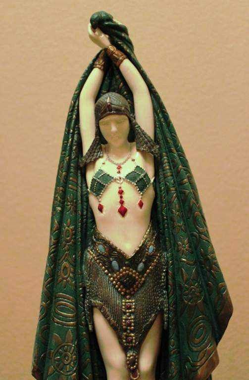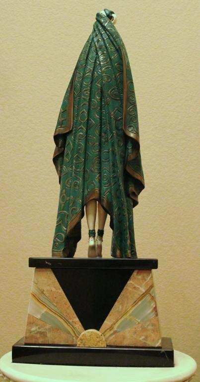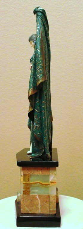 "ANTINEA" - BRONZE AND IVORY SCULPTURE - AFTER CHIPARUS - MUTLI COLOR FINISH - HAND CARVED IVORY - MOUNTED ON MARBLE AND ONYX BASE - APPROX. 26" X 11"X6" - MINT - MUSEUM QUALITY