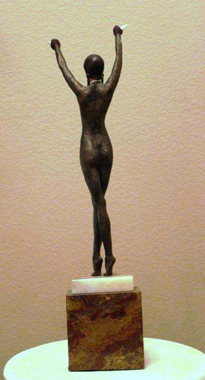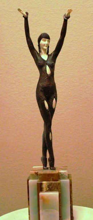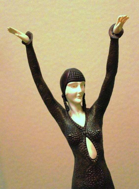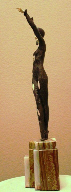 "DOURGA" - BRONZE AND IVORY SCULPTURE - AFTER CHIPARUS - MUTLI COLOR FINISH - HAND CARVED IVORY - MOUNTED ON MARBLE AND ONYX BASE - SIGNED - MINT - 24"X5"X5" - MUSEUM QUALITY