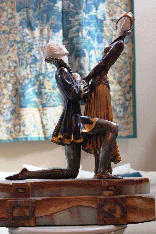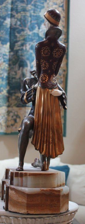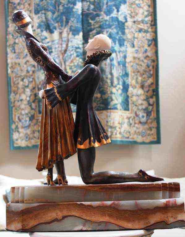 "EVERLASTING LOVE" - BRONZE AND IVORY SCULPTURE - AFTER CHIPARUS - MUTLI COLOR FINISH - HAND CARVED IVORY AND BRONZE - MOUNTED ON MARBLE AND ONYX BASE - SIGNED - MINT - 27"X20"X8" - MUSEUM QUALITY