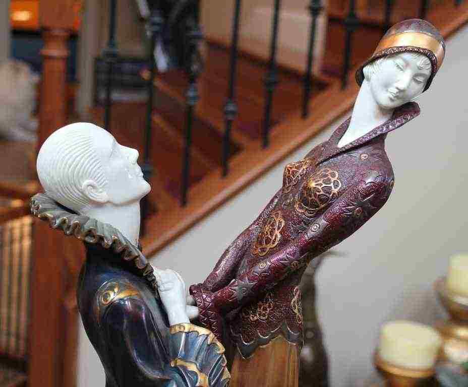 "EVERLASTING LOVE" - BRONZE AND IVORY SCULPTURE - AFTER CHIPARUS - MUTLI COLOR FINISH - HAND CARVED IVORY AND BRONZE - MOUNTED ON MARBLE AND ONYX BASE - SIGNED - MINT - 27"X20"X8" - MUSEUM QUALITY