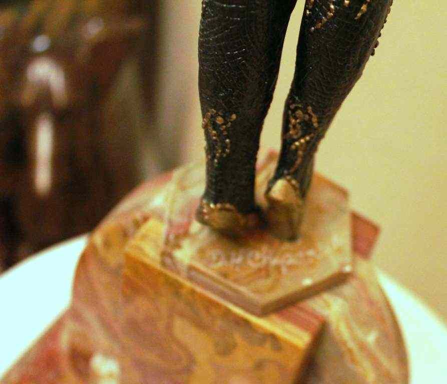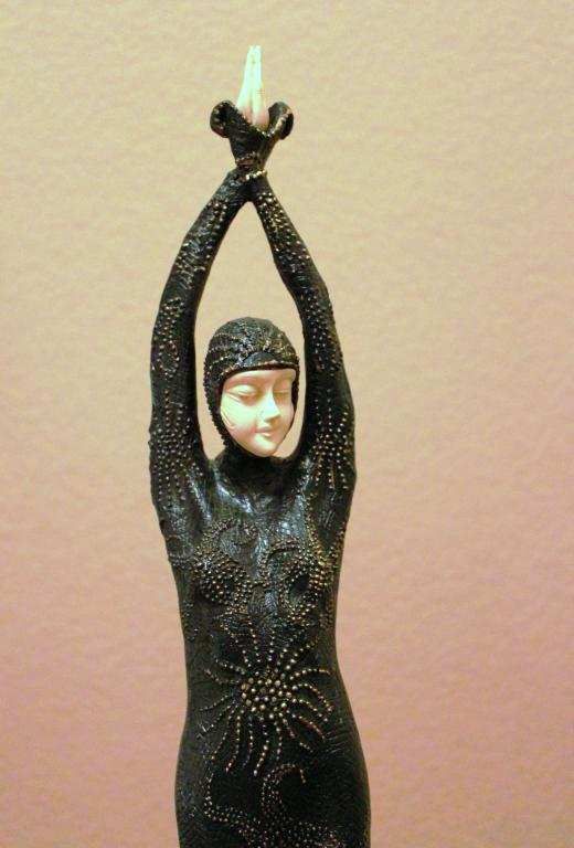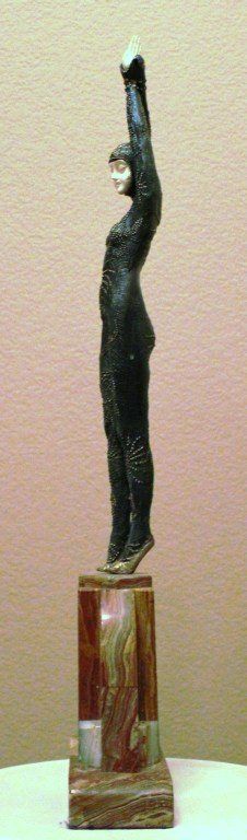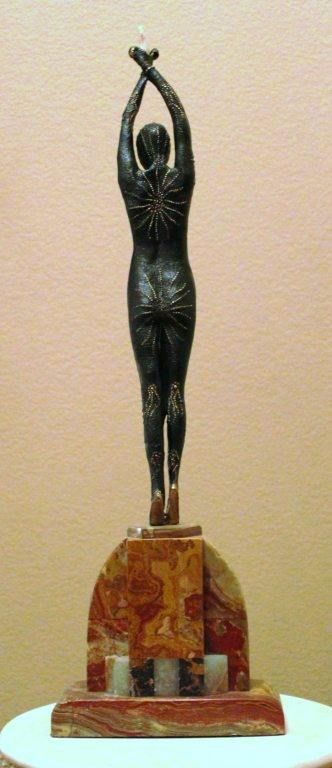 "STARFISH DANCER" - BRONZE AND IVORY SCULPTURE - AFTER CHIPARUS - MUTLI COLOR FINISH - HAND CARVED IVORY - MOUNTED ON MARBLE AND ONYX BASE - SIGNED - MINT - APPX 29"X9"X3.5" - MUSEUM QUALITY