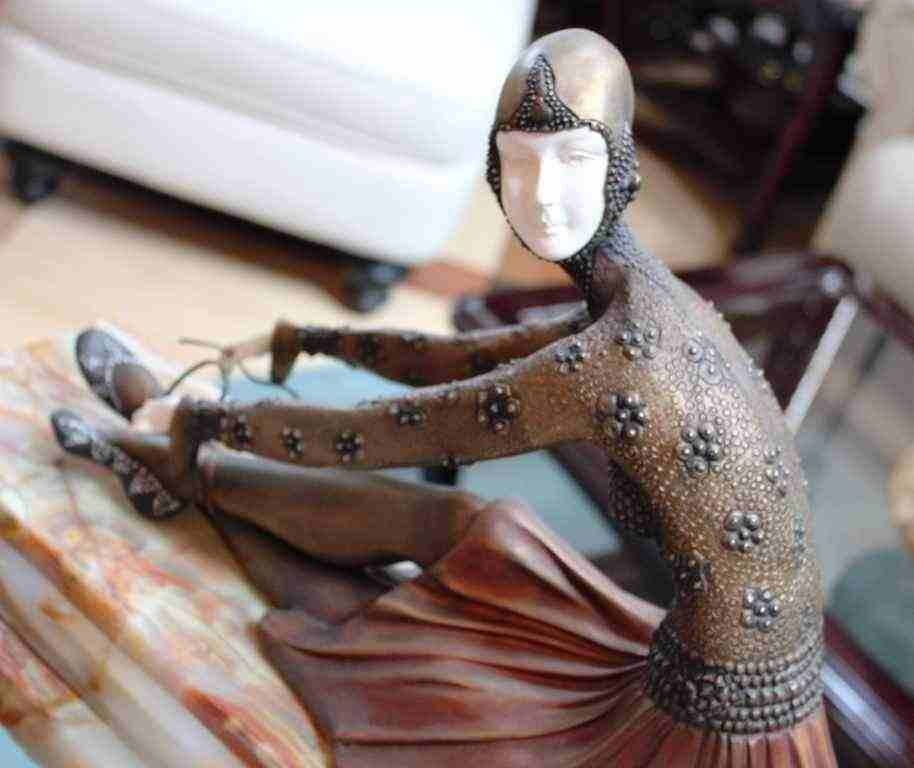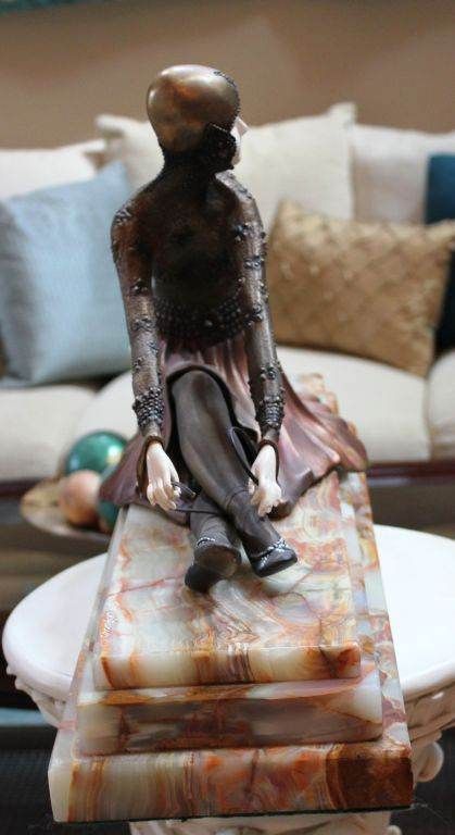 "TANARA" - BRONZE AND IVORY SCULPTURE - AFTER CHIPARUS - MUTLI COLOR FINISH - HAND CARVED IVORY AND BRONZE - MOUNTED ON MARBLE AND ONYX BASE - SIGNED - MINT - 15"X26"X6" - MUSEUM QUALITY