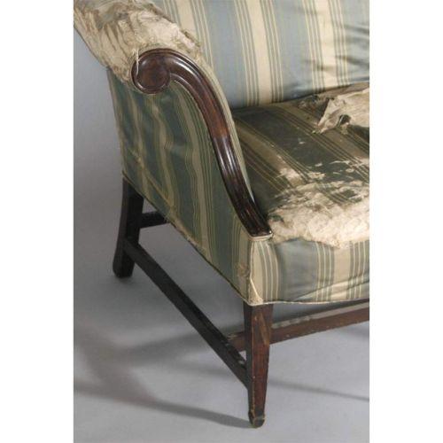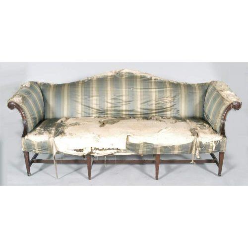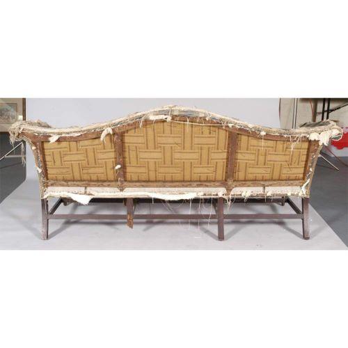 CHIPPENDALE CAMEL BACK SOFA 88"long,37"high, loss to one back leg, probably 18th century, CONDITION: back leg missing, see images,