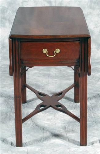 CHIPPENDALE MAHOGANY PEMBROKE TABLE with cut-out X stretchers, bowed drawer and shaped top, 35"x35" top (open), 27 1/4" high, circa 1770, refinished, SHIPPING: See recommended third party shippers. This item can't be packed or shipped by seller.