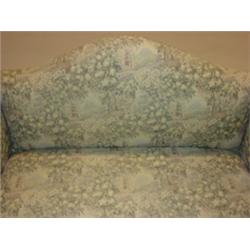 Chippendale style upholstered loveseat. Nicely upholstered showing minimal signs of wear. 35" H to top of back, 44" W, 20" H to bottom of seat.