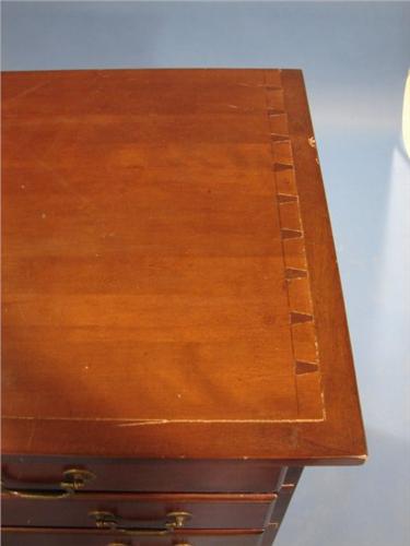 CHIPPENDALE STYLE CHERRY DOUBLE DRESSER. Dovetailed case. Ogee bracket feet. Three dovetailed drawers over 6 dovetailed drawers. Shell carving at top center drawer front. Fan carving at bottom center. 34” H, 60” L, 20” W