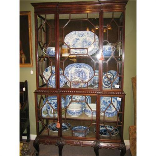 <tr><td>Title:CHIPPENDALE STYLE ENGLISH DOUBLE DISPLAY/CHINA</td></tr>
