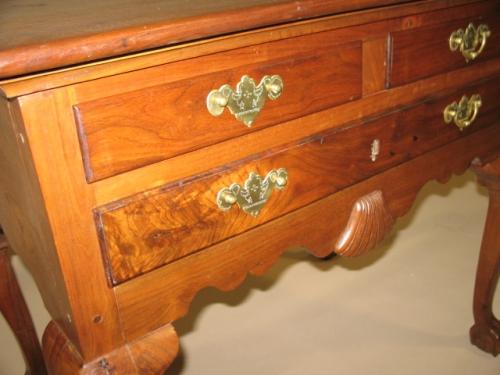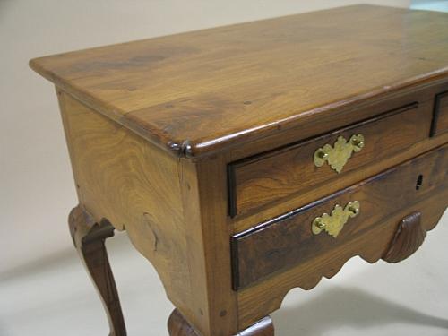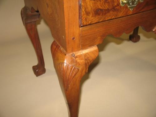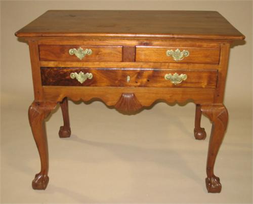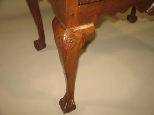 ORNATELY CARVED WALNUT CHIPPENDALE STYLE LOW BOY. Shell carved knees. Carved shell decoration at center. Two drawers over single drawer. Dovetailed drawers. Pegged construction. 29” H, 34” W, 21” D