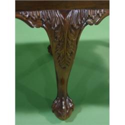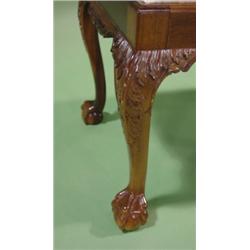 CHIPPENDALE STYLE MAHOGANY BENCH. Cushion seat. Carved knees and ball & claw feet. Slight staining to top of seat. 19.5" H, 43" L, 19" W