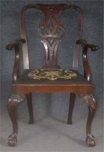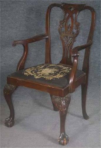 CHIPPENDALE STYLE centennial ARM CHAIR with needlepoint seat, circa 1880 height: 36, seat: 21"