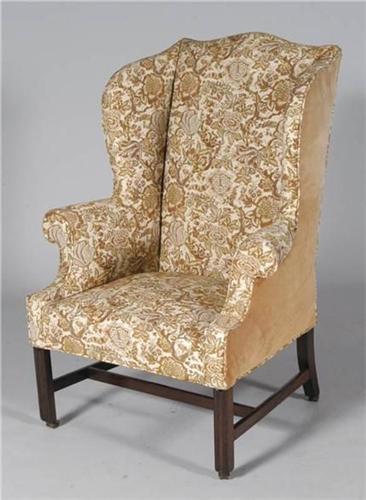 CHIPPENDALE WINGBACK ARMCHAIR 45" high, 32" wide, late 18th century, CONDITION: excellent, no damage or repairs apparent, not inspected under upholstery.