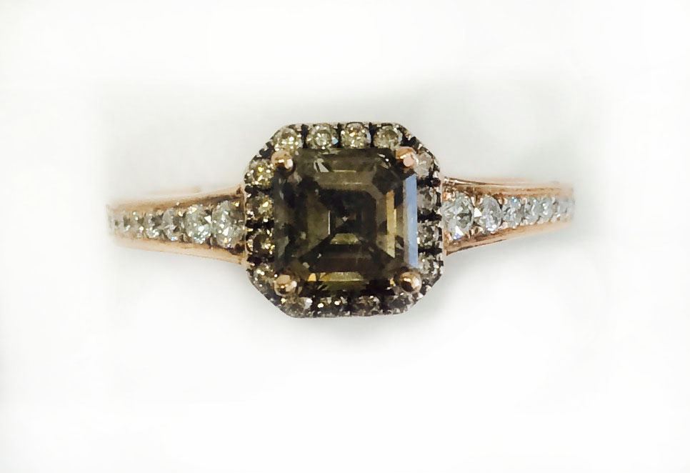 CHOCOLATE DIA CENTER 0.95CT, 14K R/G RING 3.30GRAM / W.DIA RD 0.22CT /C.DIA RD 0.13CT