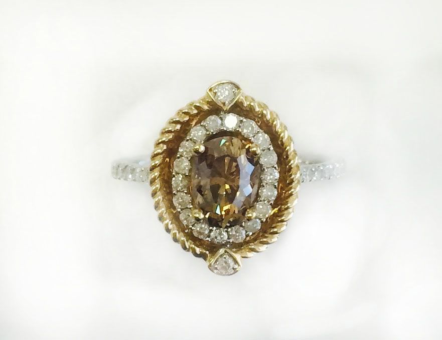 CHOCOLATE DIAMOND 0.94CT, 14K W/Y/G RING 3.10GRAM / W.DIAMOND 0.40CT
