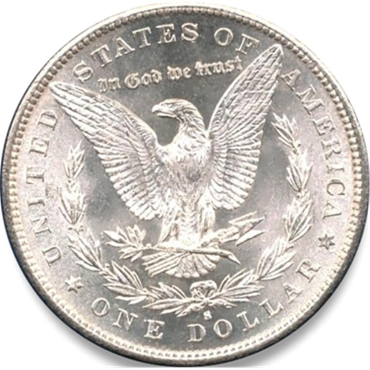 CHOICE 1889-S MORGAN SILVER DOLLAR-MS65