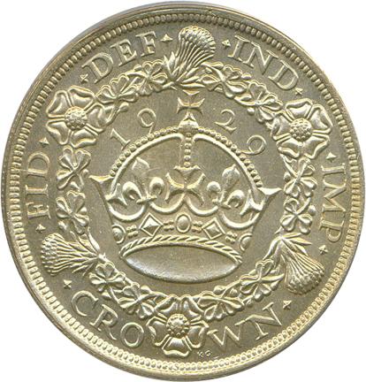 CHOICE 1929 GREAT BRITIAN SILVER CROWN NICE TONING-PCGS MS63
