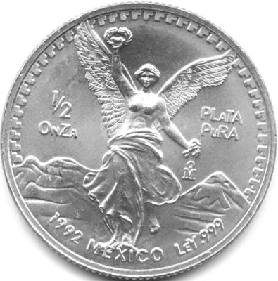 CHOICE 1992 MEXICO SILVER 1/2oz ONZA-CH BU+ .999 SILVER