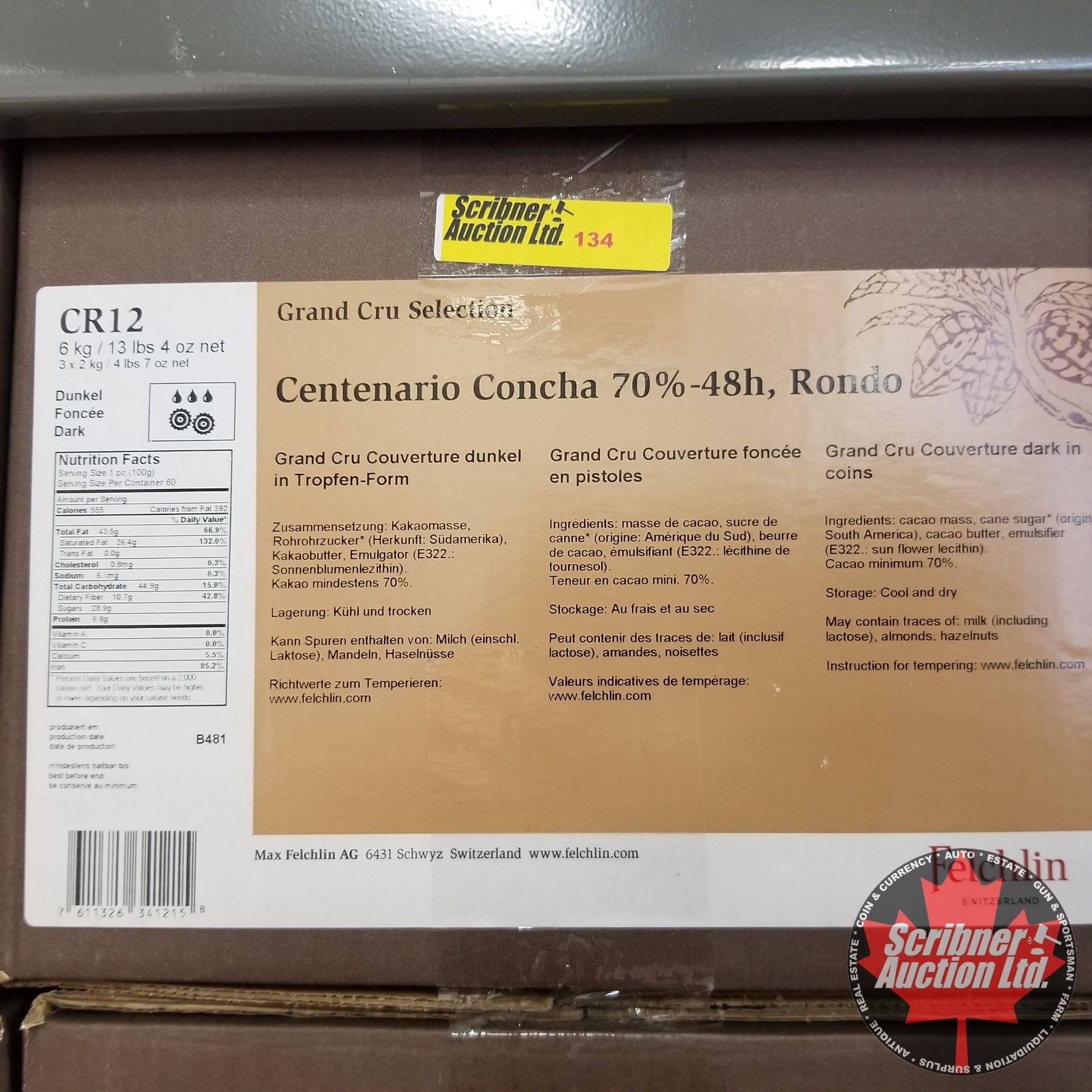 CHOICE OF 6 BOXES: Chocolate - Felchlin : Centenario Concha 70%-48h, Rondo Grand Cru Couverture Dark in Coins (1 Box = 6kgs)