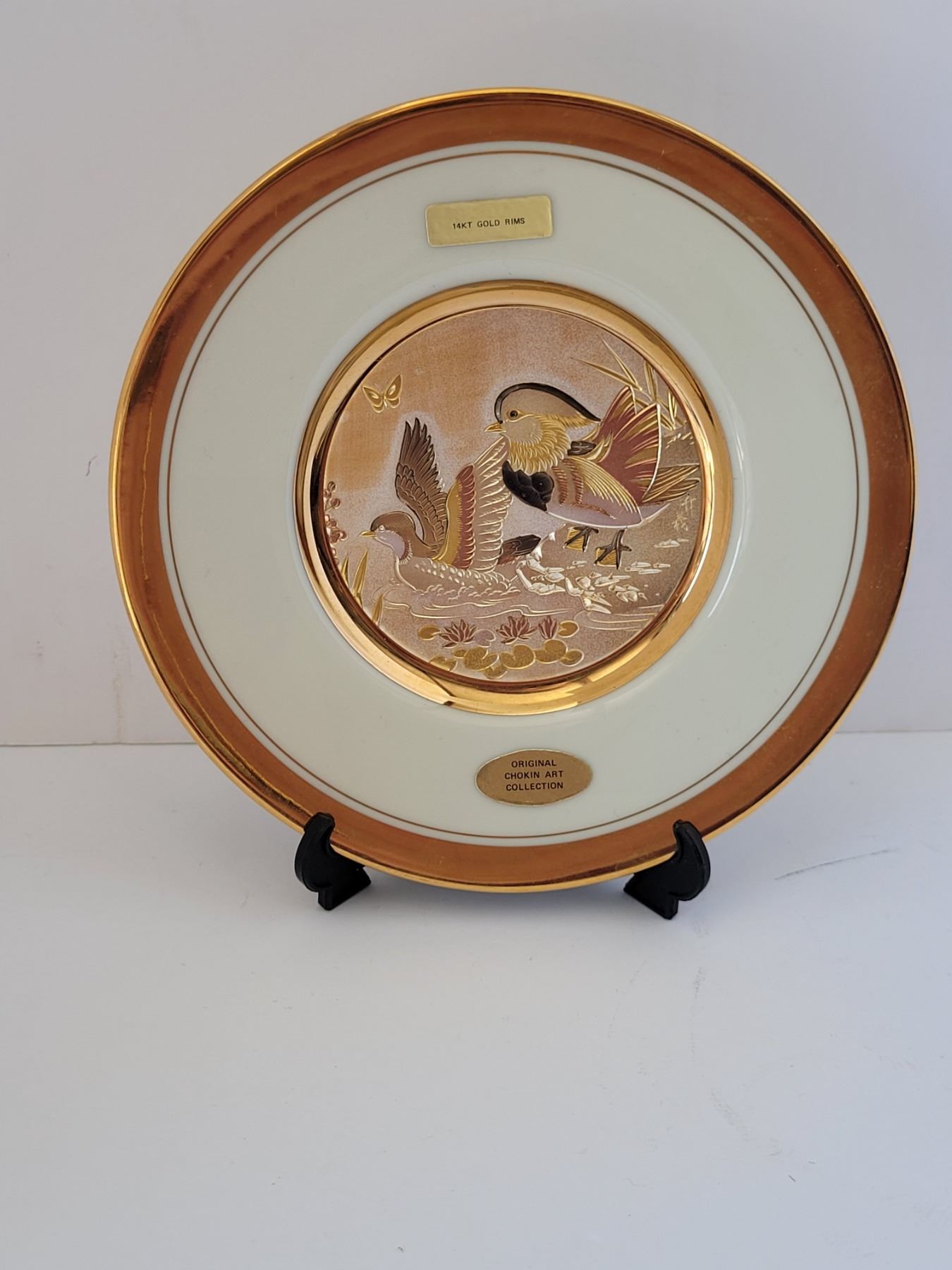 CHOKIN 24K GOLD EDGE FROLICKING FOWL PLATE 6"