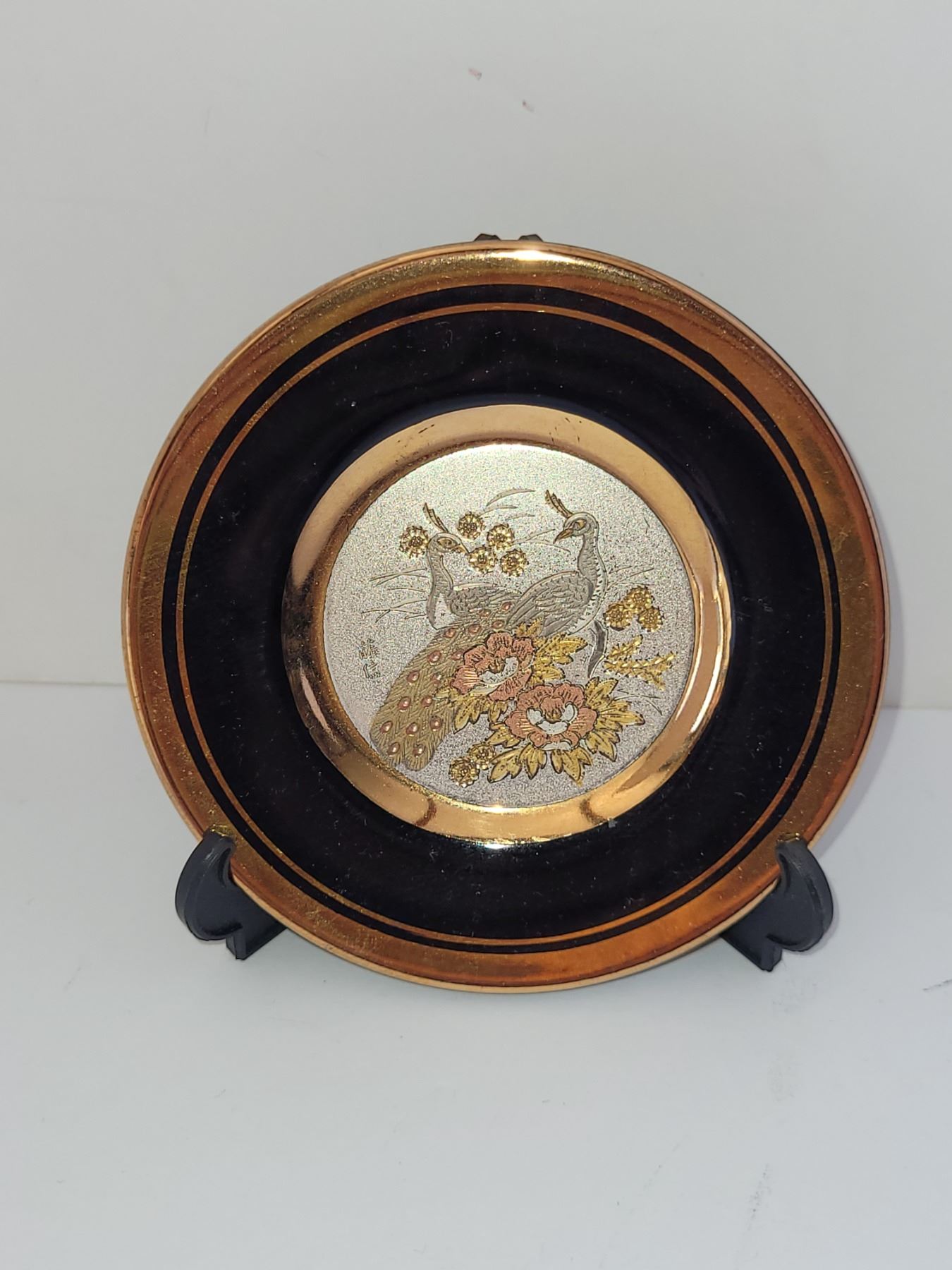 CHOKIN 24K GOLD EDGE PEACOCKS PLATE 6" CLOISONNE