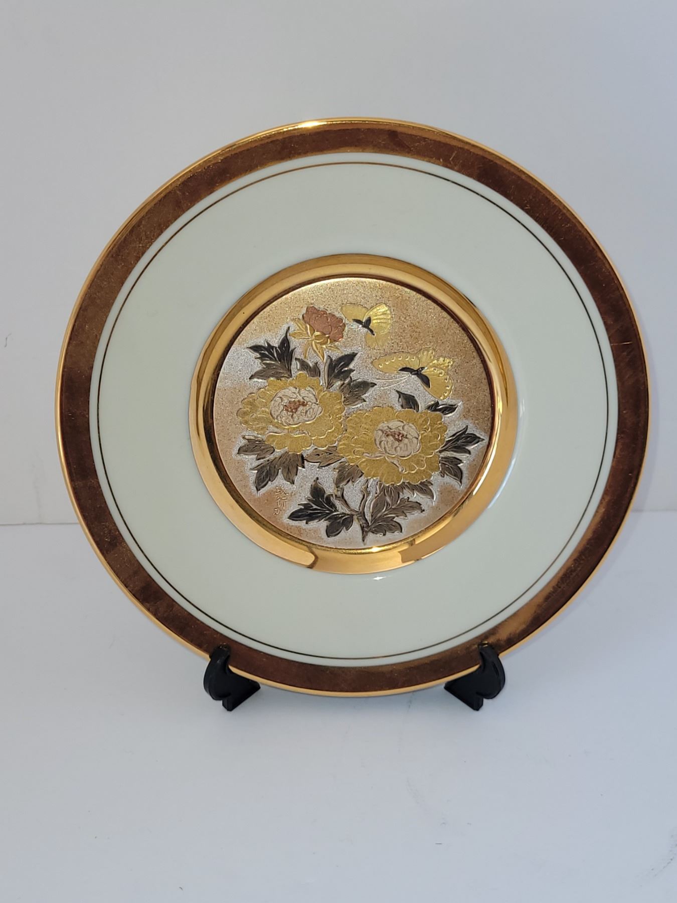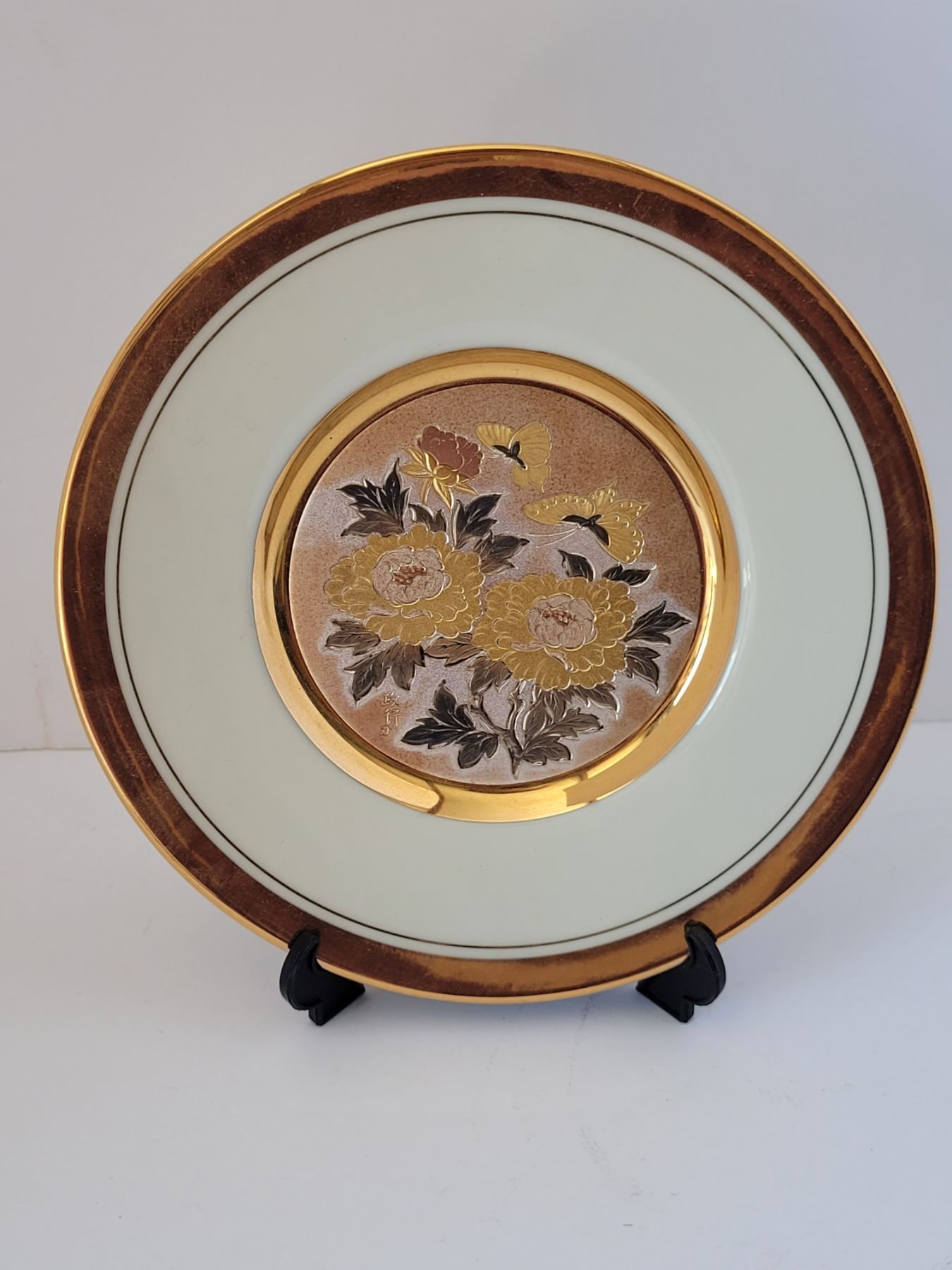 CHOKIN 24K GOLD EDGE PEONIES PLATE 6.5"