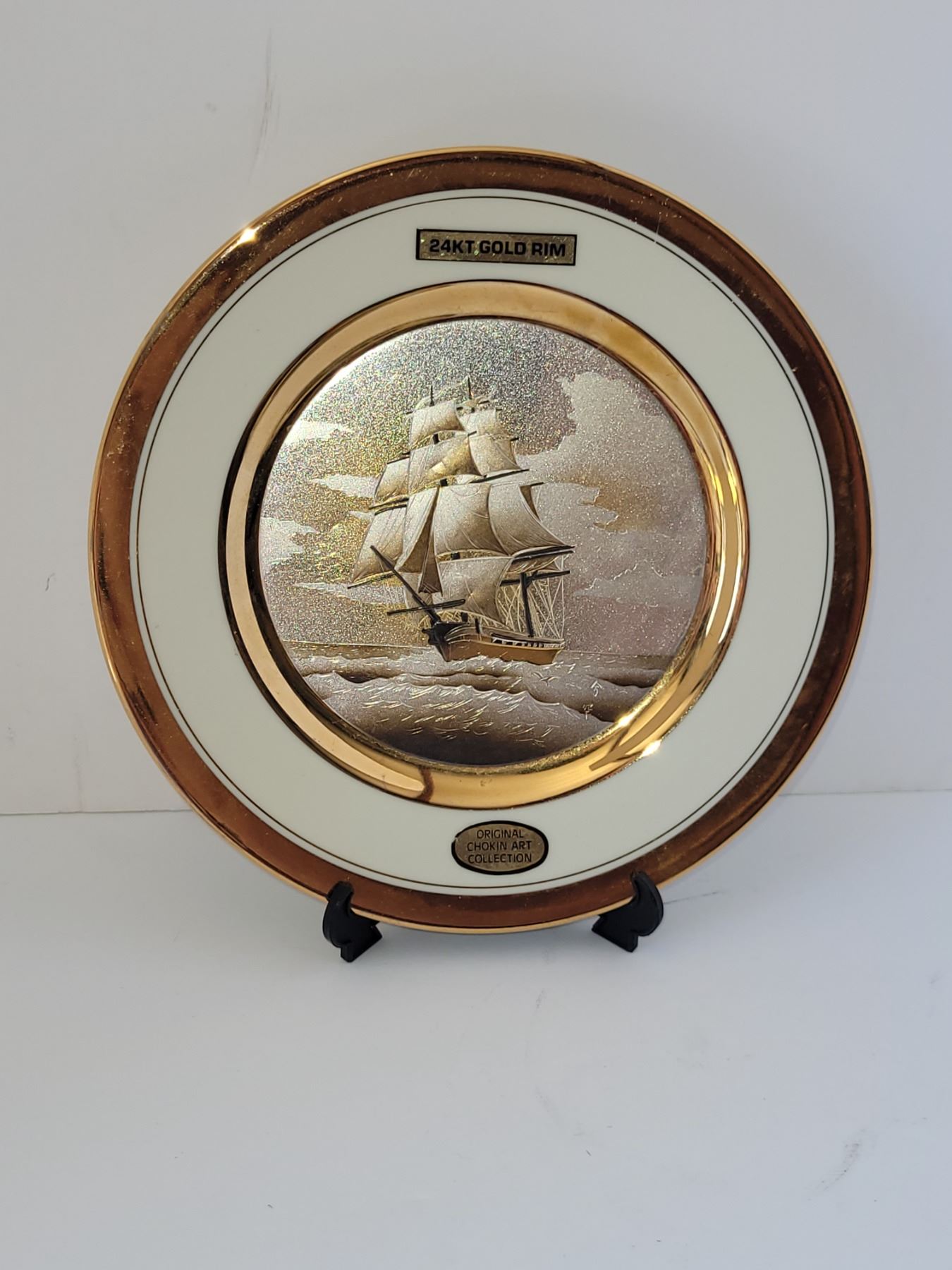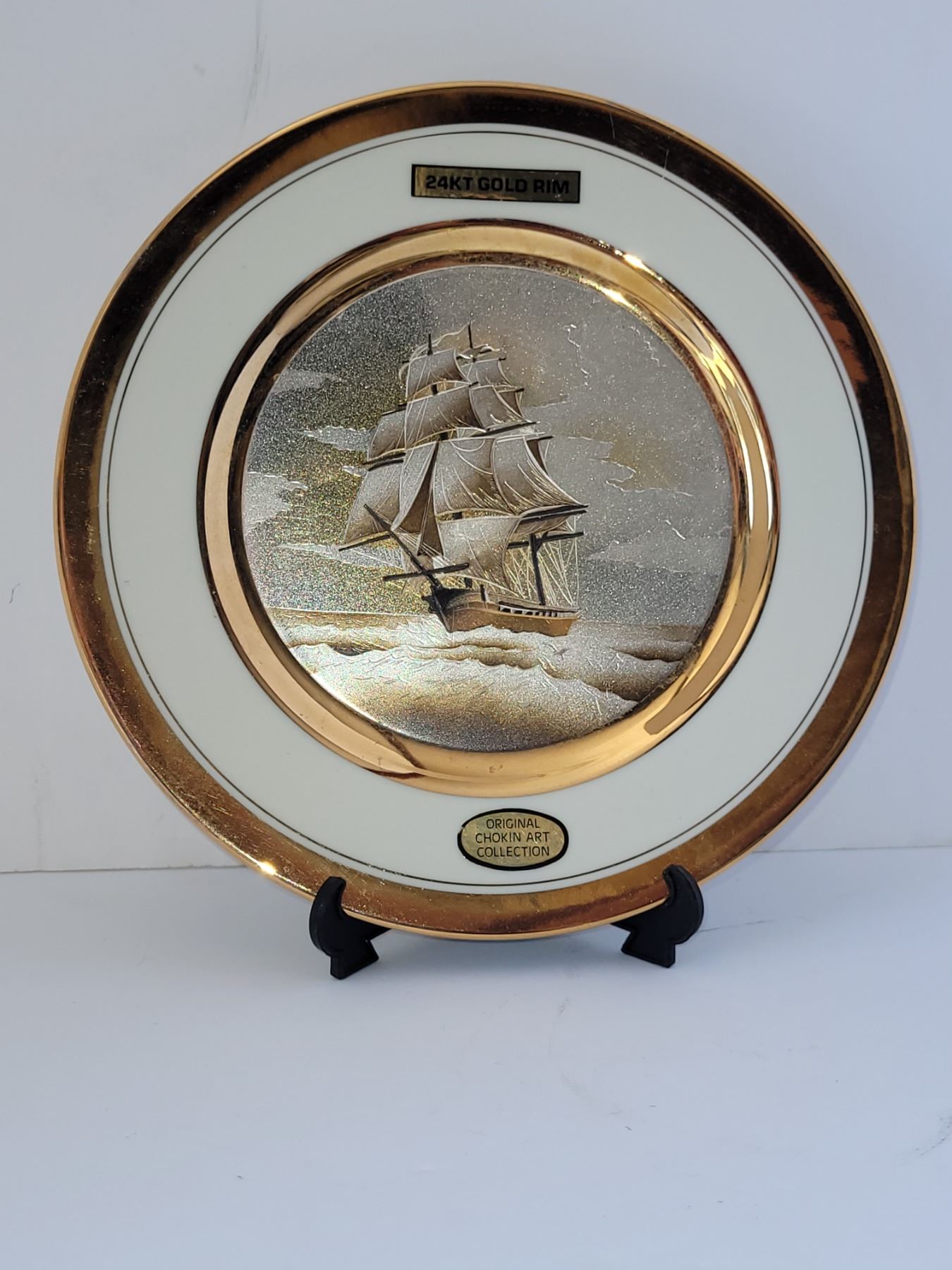 CHOKIN 24K GOLD EDGE SAIL BOAT PLATE 8"