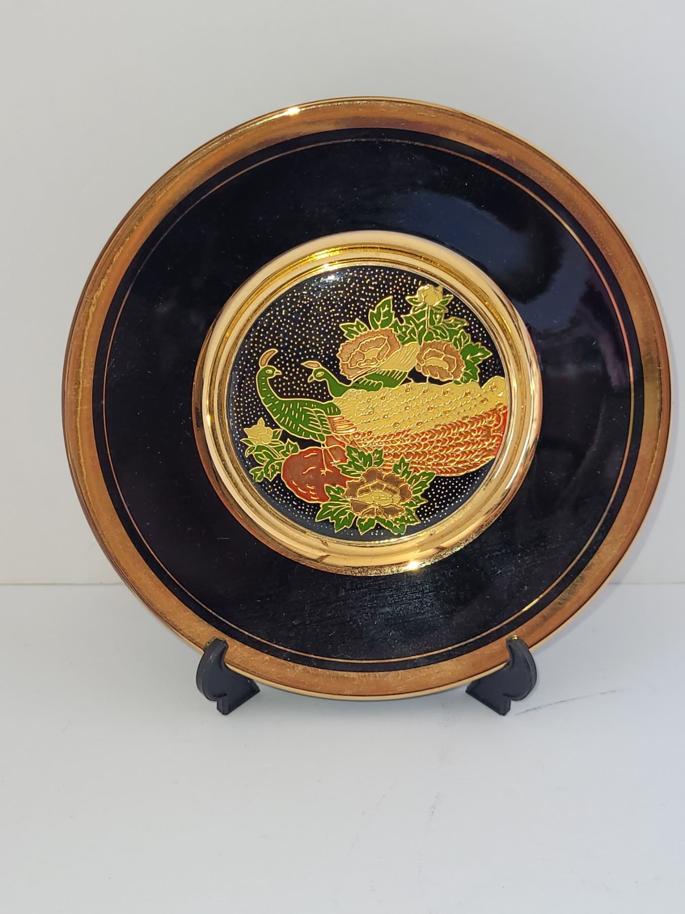 CHOKIN CLOISSONE 24K GOLD EDGE PEACOCK PLATE 6"
