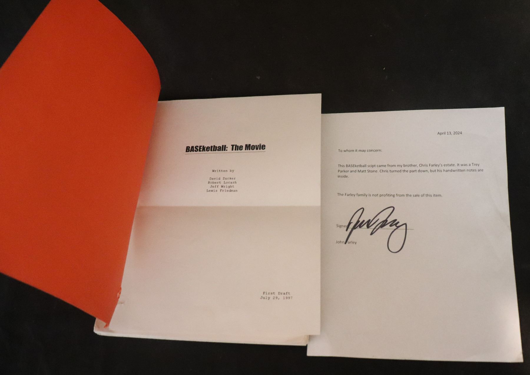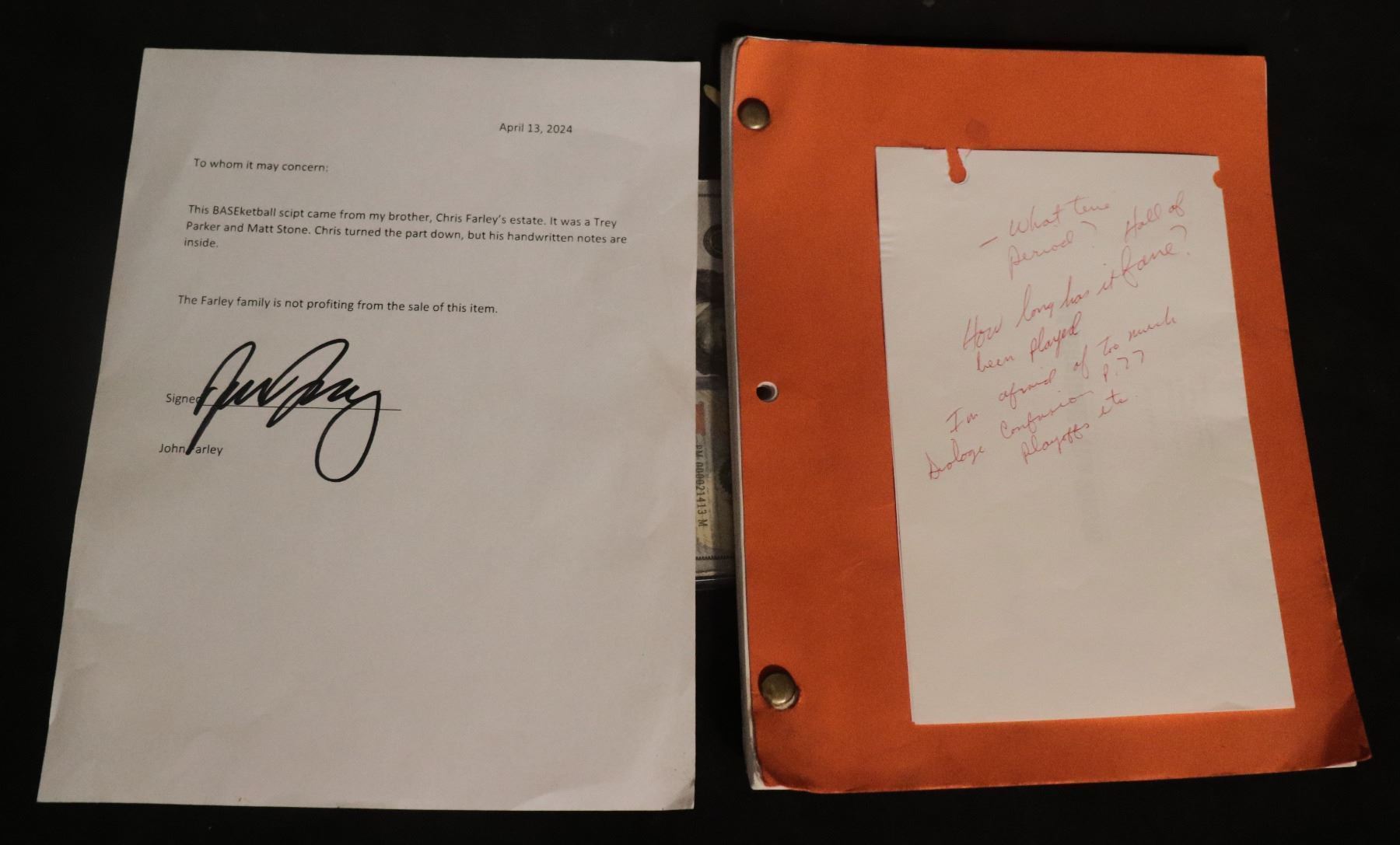 CHRIS FARLEY BASEKETBALL SCRIPT WITH HANDWRITTEN NOTES!