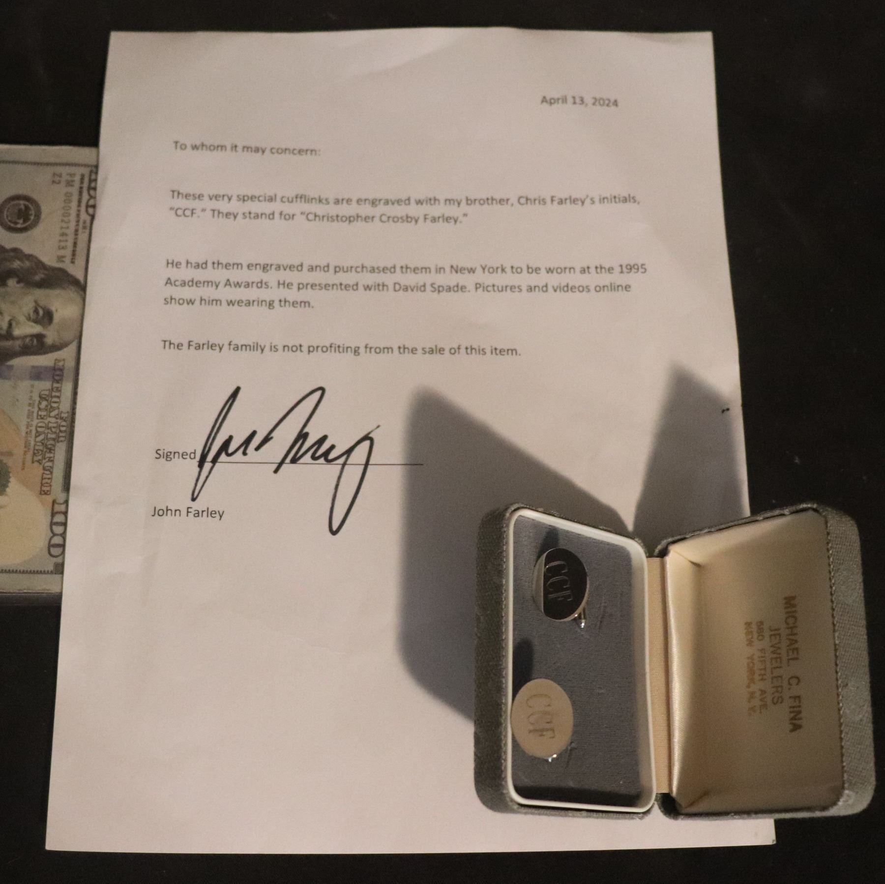 CHRIS FARLEY ENGRAVED CUFF LINKS HE WORE AT THE ACADEMY AWARDS!